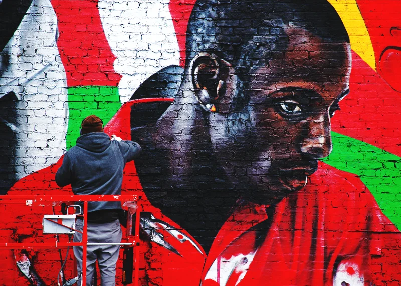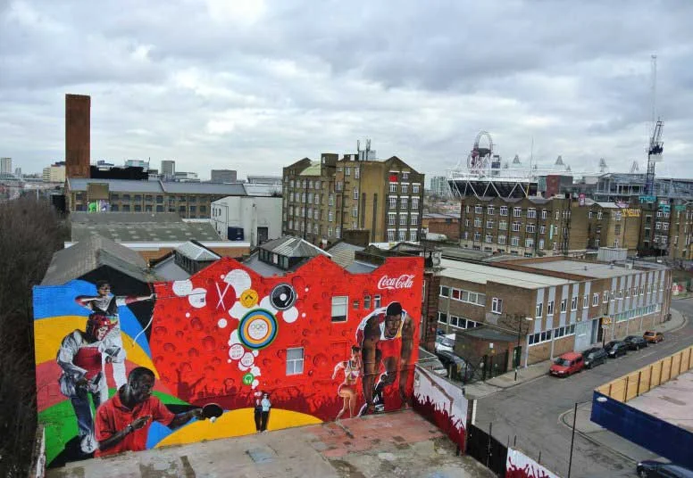 Proud to be based in the 2012 Olympic host city, we created an enormous 2500 square ft mural in the foreground of the Olympic Stadium for Coca Cola. Dubbed the “Beat Wall”, this photorealistic mural fused music and sport to capture a youthful demographic in London. A creative stop animation film and media launch event featured our artists alongside Mark Ronson and Katy B who produced the campaign’s song.