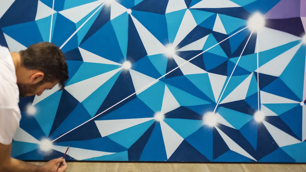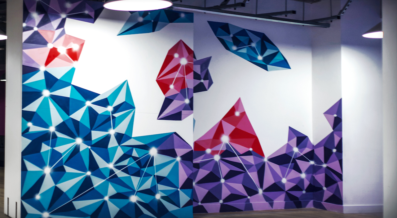 To thank poster specialists, Kinetic WW, for a fantastic year of collaboration, we designed and painted a geometric mural inside their London office's idea space. We hope they now feel more creative than ever!