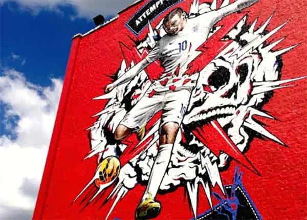 Clerkenwell: 50 ft tall mural featuring Wayne Rooney for World Cup duration.