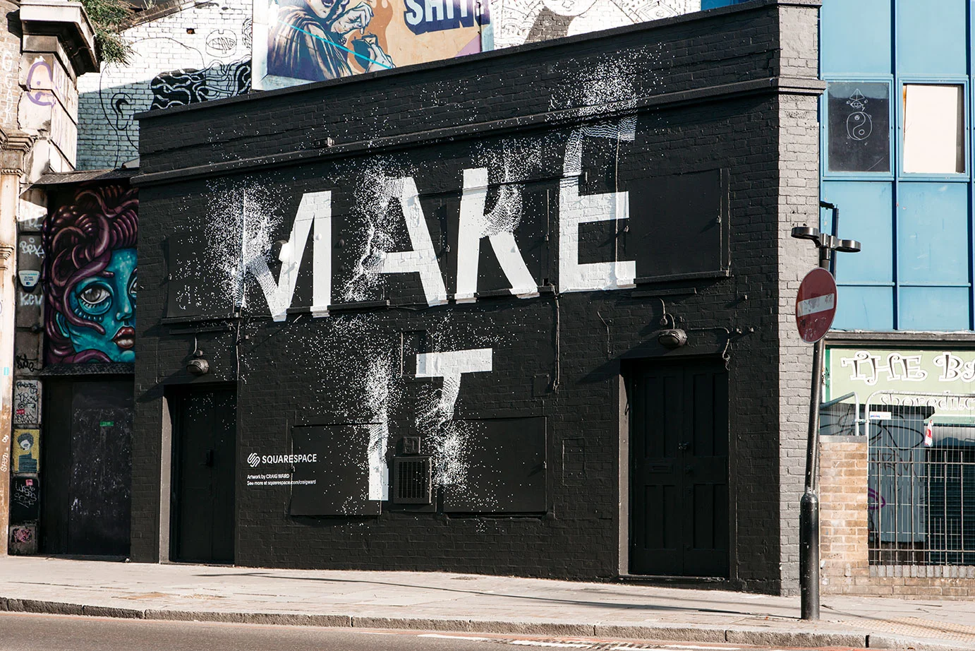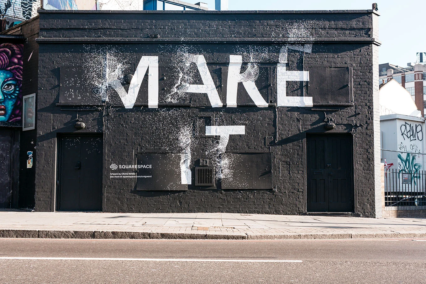 Squarespace tested our skills back in October with two envelope pushing concepts created by US based British born typography pioneer Craig Ward. Communicating their simple and direct ‘Make It’ message Squarespace presented us with a unique 3D treatment, floating the MAKE IT message out of a monochrome striped pattern on Ebor St and an exploding pixelated type on the Great Eastern gallery. Both were fantastic examples of what you can do when you push the boundaries of typography to deliver a simple, consistent message. We were delighted to take on Craig's challenge and, thanks to our amazing artists, we absolutely nailed it.